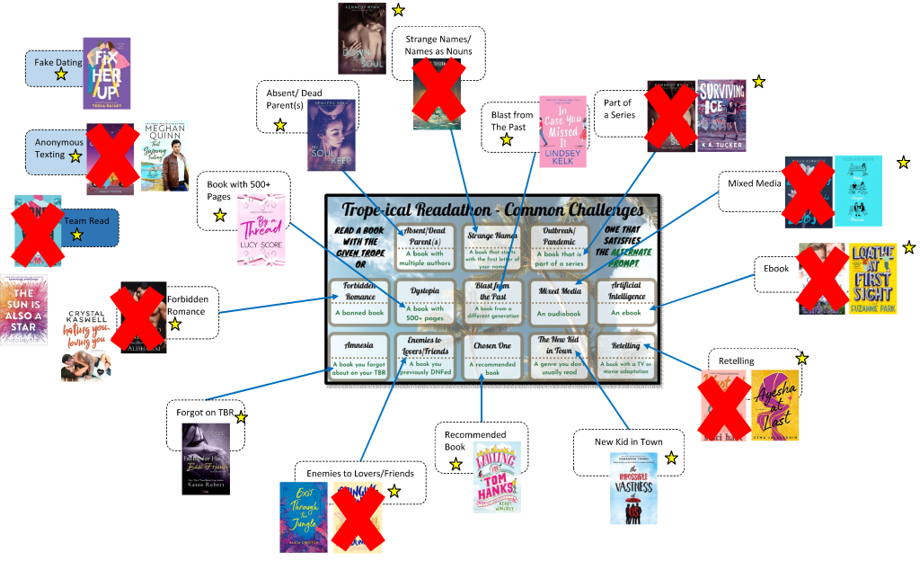 I participated in my first readathon, Trope-ical Readathon. The organizers JenJenReviews and Rob did such an awesome job. The bar has been set high and I look forward to more readathons in the future. It was fun to feel part of a community and reading together especially because my IRL communities do not read very much.