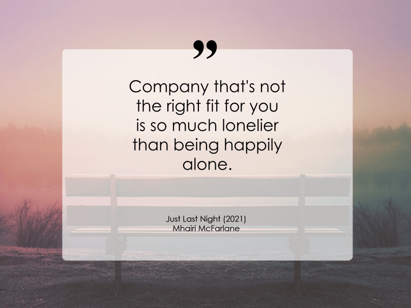 This is a hard question. I have a Quotes feature with quotes from books and other places. A recent favorite quote is from Mhairi McFarlane’s Just Last Night (2021):