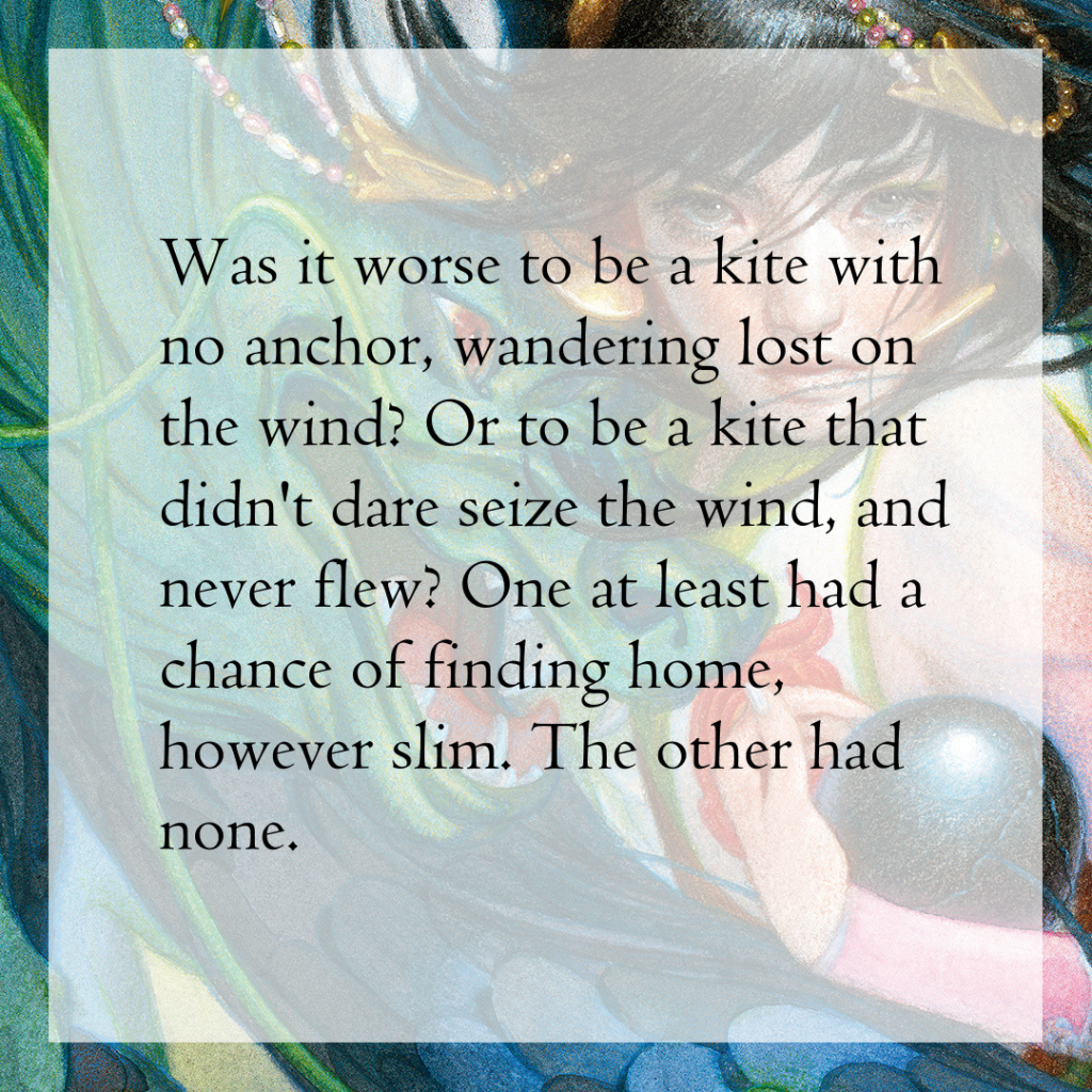 The world-building remains one of my favorite aspects of the duology. While much of the story takes place in Kiata and within the palace walls, it expands with the new places Shiori visits. If I could, I would have liked to stay in some of them just a bit longer. The writing also remains captivating, but the focus on tying up loose ends distracted me from enjoying it.