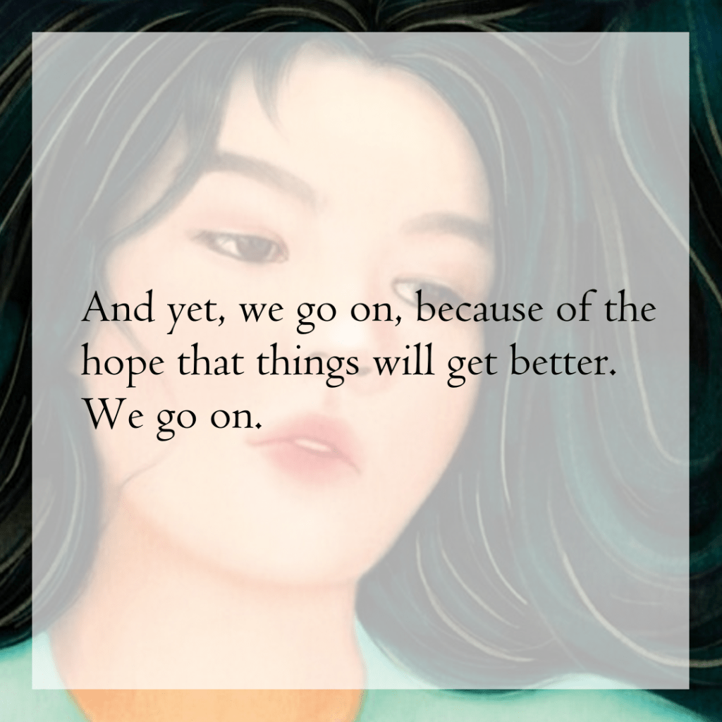 While I tried to keep the romance at a distance, I was drawn to the political components of the book. What Song does best here is allow readers to recognize how each side truly believes they are on the side of “good,” protecting rights on one side and administering the law on the other. Additionally, it also provides a glimpse into why there are also so many who have chosen to stay silent.